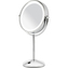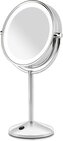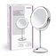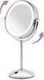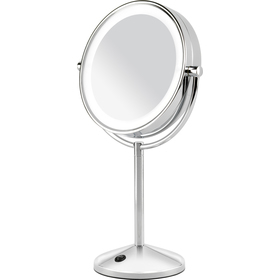 Toto elegantné zrkadlo disponuje dvoma zrkadlovými plochami s priemerom 19 cm. Štandardná plocha poskytuje verný a prirodzený obraz, zatiaľ čo druhá plocha ponúka 10x zväčšenie pre precízne úpravy obočia, líčenie alebo holením. Jemné obrysové LED osvetlenie zabezpečuje dokonalé osvetlenie tváre aj za horších svetelných podmienok.