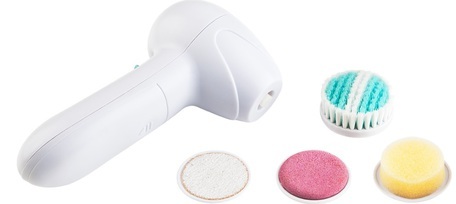 Elektrický čistící kosmetický kartáček se čtyřmi nástavci , 2 peelingové nástavce na odstranění odumřelých kožních buněk, čistící pleťový kartáček, make-up houbička na dočištění nebo nanášení make-upu, 2× AA 1,5 V baterie (nejsou součástí) prečítať celé