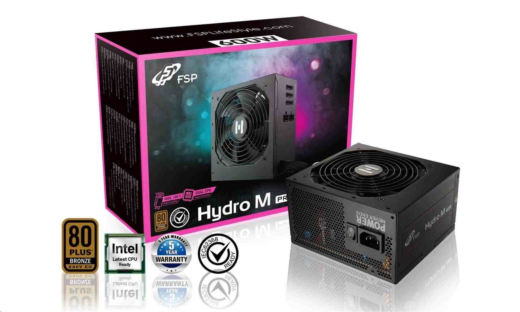 FSP/Fortron HYDRO M PRO 600, 80PLUS BRONZE 230V EU, 600W, semi-modularNové zdroje HYDRO M PRO plně vyhovují standardu ATX12 v2.52 a také nejnovější bezpečnostní regulaci 62368 a jsou vybaveny semi-modulárními, černými a vysoce kvalitními plochými kabely, díky nimž váš počítač získá skvělý vzhled....