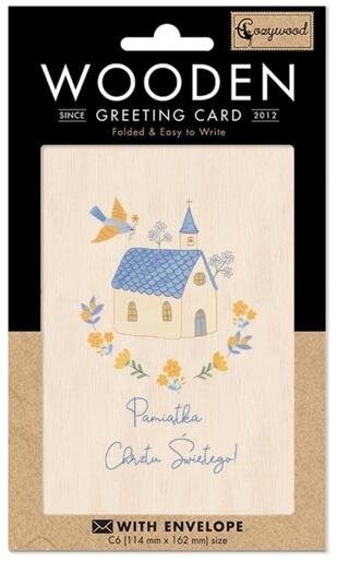 Karnet drewniany C6 + koperta Chrzest Gołąb