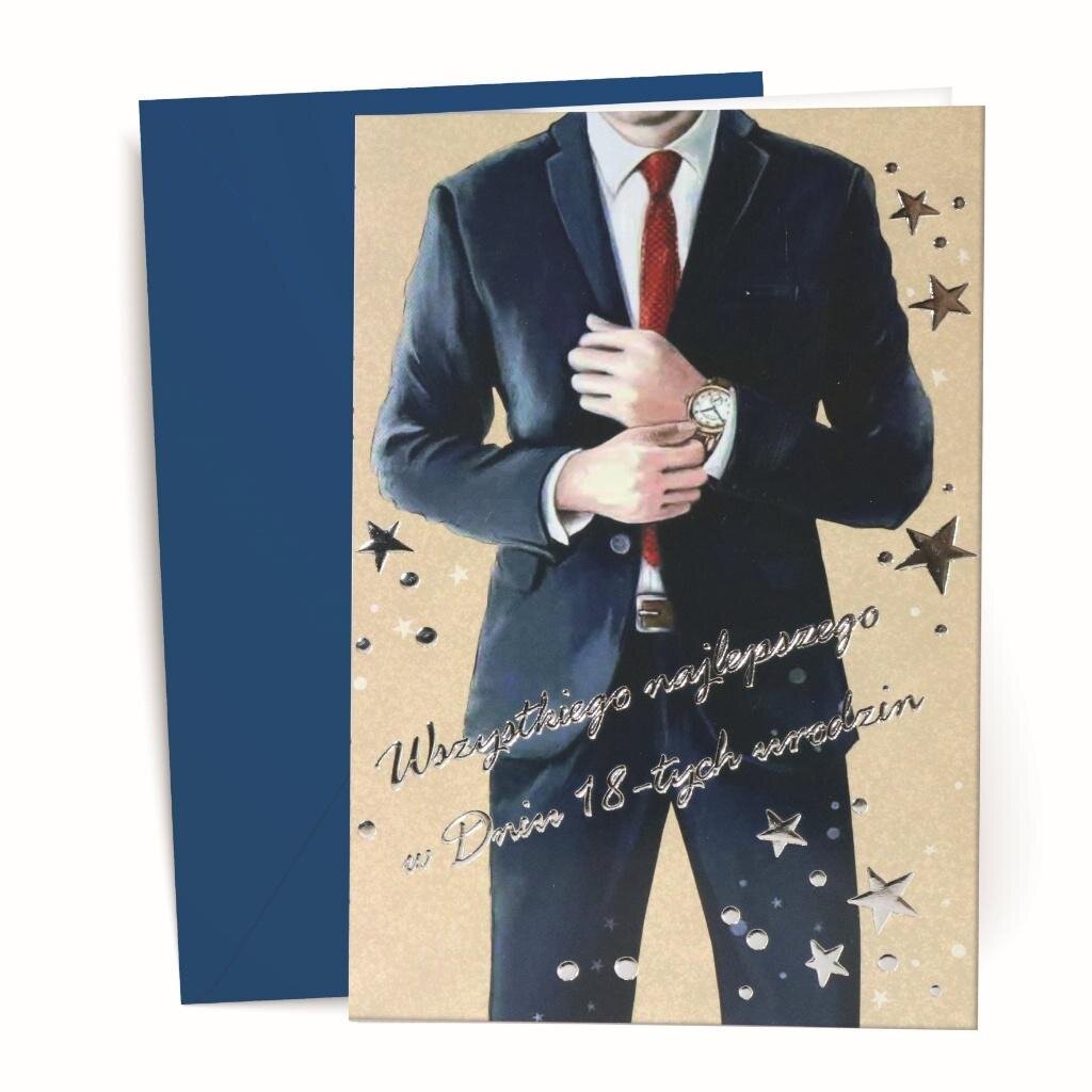 Kartka z kopertą, z życzeniami na 18 urodziny. Opakowana folią open. prečítať celé