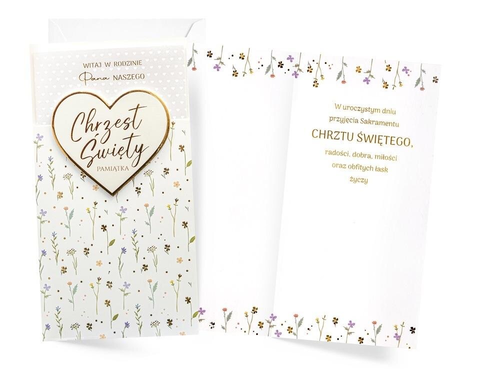 Kartka na Chrzest z serii Passion Moments PM-401 Każda kartka w kolekcji Passion Moments to małe arcydzieło - wyjątkowe i niepowtarzalne, piękne wizualnie. Kartki PM są bardzo bogato zdobione, a jednocześnie skromne i stylowe, cały efekt tkwi w detalach i doskonałym wykonaniu. W zależności od...