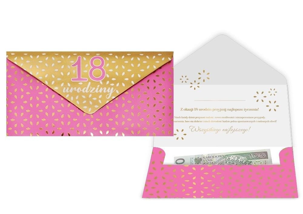 Koperta podarunkowa KOP-024 "18 urodziny" Koperta podarunkowa jest eleganckim sposobem na podarowanie bliskiej osobie banknotu lub karty podarunkowej. Koperta jest kolorowa i uszlachetniona metalizowaną folią hot-stamp, jest solidnie wykonana i wyposażona w rzep, co umożliwia jej wielokrotne...