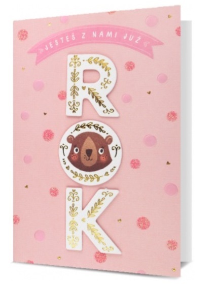 Karnet 1 urodziny, roczek - Jesteś z nami już ROK różowy HM200-2140