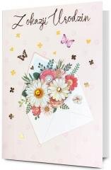Kartka jest bogato i różnorodnie zdobiona (zależnie od wzoru: metaliczna folia, lakier perłowy,brokat, przyklejone elementy 3D - wypukłe wstawki papierowe, elementy biżuteryjne, tłoczenia).Kartka zawiera życzenia i kolorowy środek.W zestawie znajduje się koperta, kolorystycznie uzupełniająca się... prečítať celé