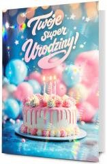 Kartka jest zdobiona opalizującą folią holograficzną, zawiera życzenia oraz kolorowy środek. W zestawie znajduje się koperta, kolorystycznie uzupełniająca się z kartką. Format złożonej kartki: B6 prečítať celé
