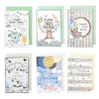 Miks wzorów, towar wysyłany losowo. Cena za sztukę.Kartka na chrzest składana. Nadruk z brokatem, hot stamp i elementami 3D. Wymiary: 11,5 x 17 cm. prečítať celé