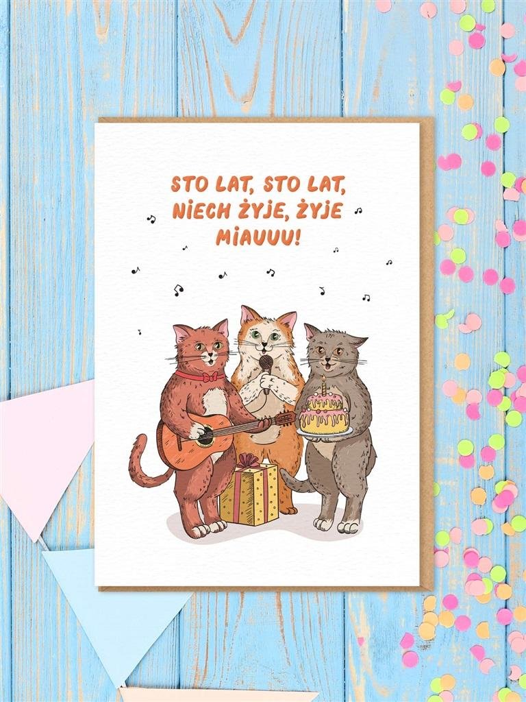 Sto lat, sto lat, niech żyje, żyje miauuu! Kot - mrrruczący cud świata! Mruczek, dachowiec, wąsacz, myszołap, futrzak, kot Miłość niejedno ma imię! Z myślą o miłośnikach kotów, którzy świętują urodziny, stworzyliśmy uroczą kartkę KOTY. Kartka urodzinowa KOTY to idealny pomysł na prezent z okazji...
