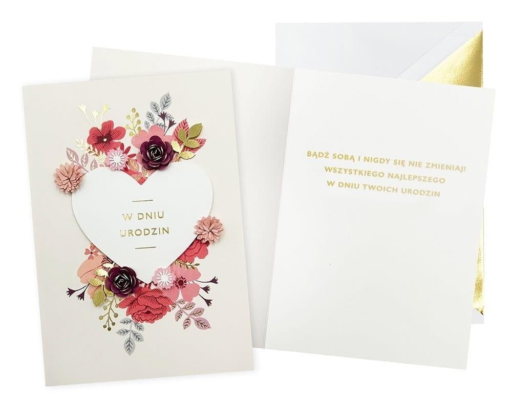 Karnet SCH-006 "W dniu urodzin" Kartka B6 z ozdobnej serii Signature Cards - nieduża, ale robi wrażenie dzięki atrakcyjnej kolorystyce i ciekawym zdobieniom. Cechy szczególne: wielkość: B6, 16.6 x 11.7 cm po złożeniu, koperta: dopasowana w zestawie, zdobiona metaliczną folią zdobienia: kolorowe, różnorodne, bogate (w zależności od wzoru: przyklejane przestrzenne dekoracje, brokat, metaliczne folie, tłoczenia itp.), okazja: urodziny