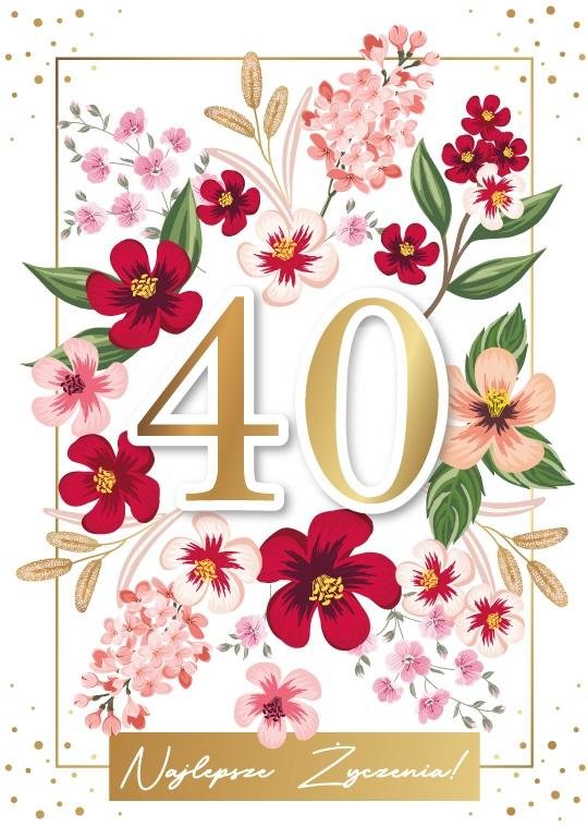 Karnet z okazji 40 urodzin z życzeniami i kopertą w środku. prečítať celé