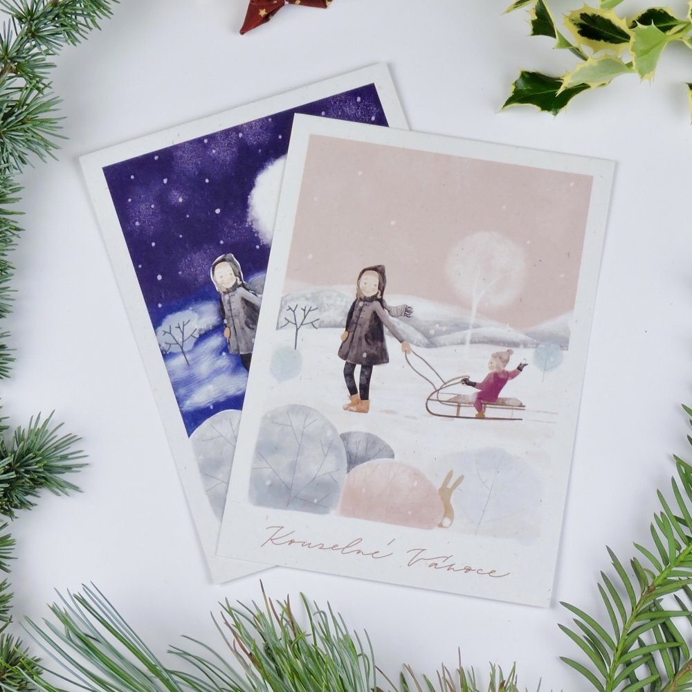Obsahuje:2 ks pohledů různých barevRozměr: 12 x 17 cmOriginální autorský designPohled ilustrovala česká výtvarnice Bára z Nikolajky. Ilustrace byly vytvořeny technikou akvarelu a kreslení. Autorské ilustrace jsou inspirovány zasněženou českou krajinou v období Vánoc.Design výrobků Be Nice...