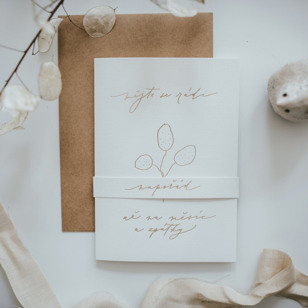 Prianie je vyrobené v českej rodinnej tlačiarni s dôrazom na ekologickú zodpovednosť - papier Milk White s gramážou 300 g/m2 je recyklovaný a recyklovateľný, pričom jeho výroba je šetrná k prírode aj vďaka ekologickej tlačiarni Gmund. Tento prístup zaručuje, že váš dar bude nielen krásny, ale aj v súlade s udržateľnými hodnotami.
