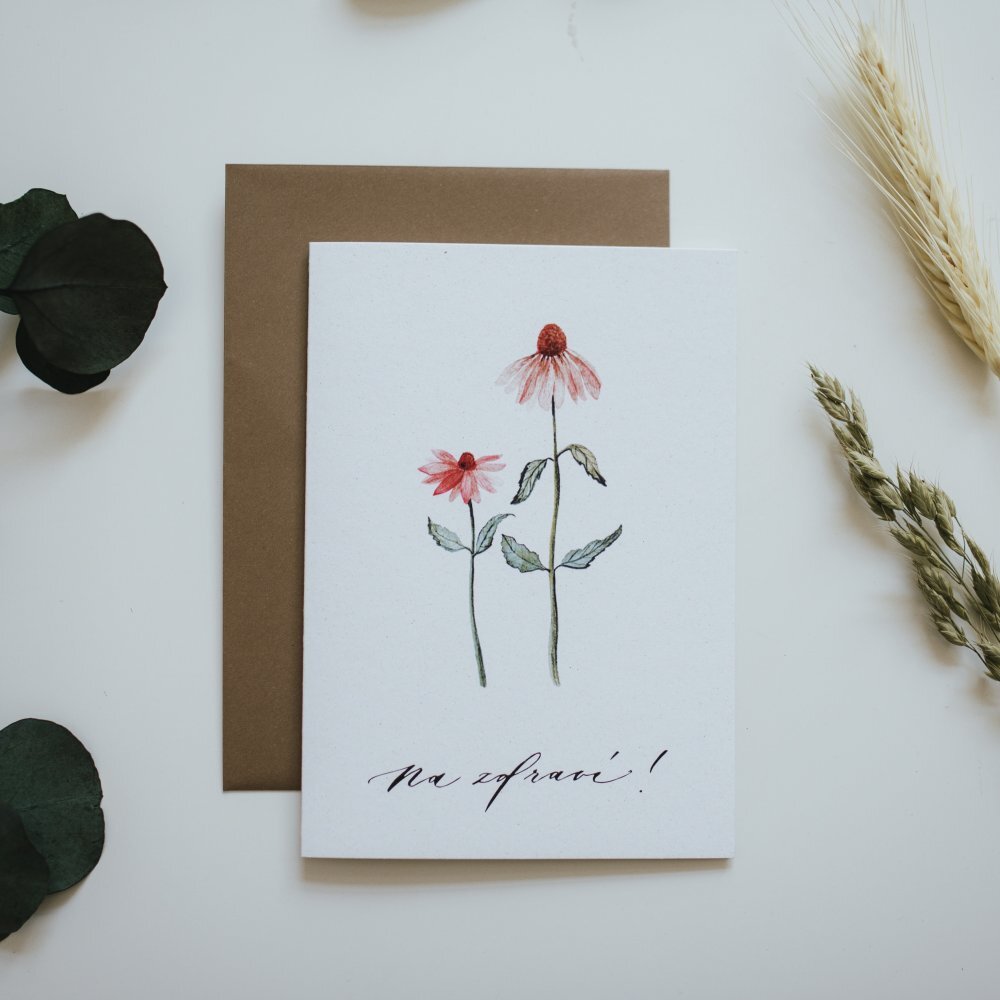 Be Nice ekologické přání Na zdraví - s originálním designem české bylinky echinacea. Přání ilustrovala česká výtvarnice Bára z Nikolajky. Rozměr: 12 x 17 cm prečítať celé
