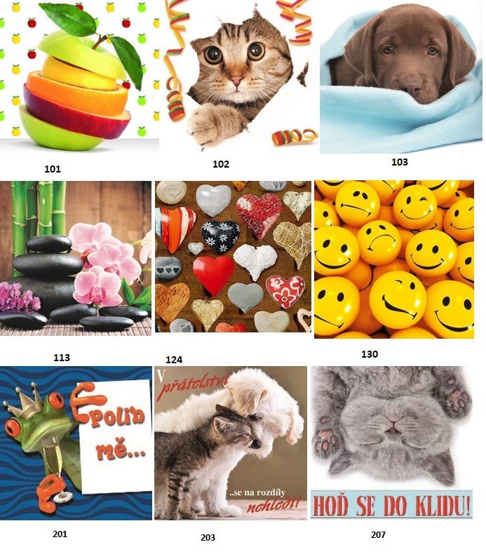 Více motivů najdete v galerii.Při objednání zboží prosím uvádějte do poznámky k objednávce objednávací číslo jednotlivého motivu.Do košíku vložte celkový počet objednaných kusů ( např.708 ).Rozměry: 16x15,5 cm. prečítať celé
