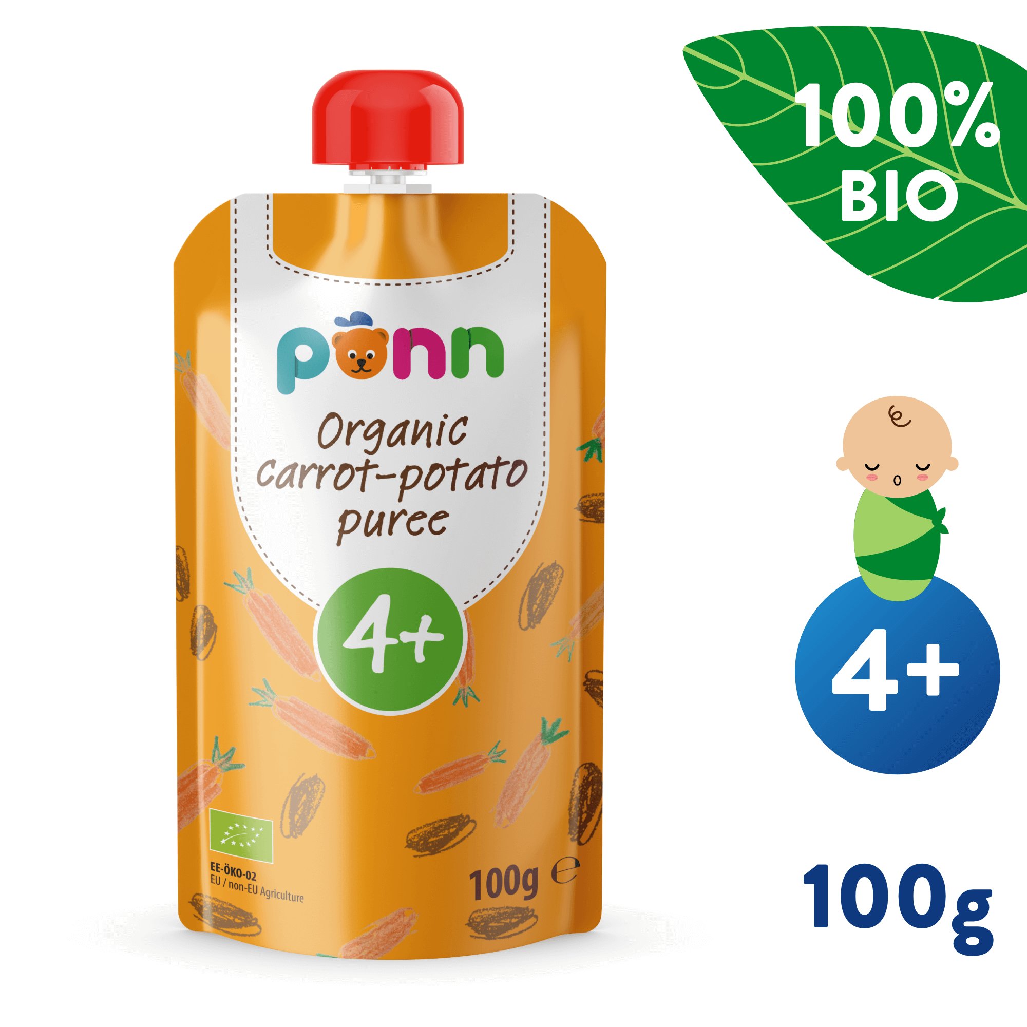 SALVEST Põnn BIO Pyré z mrkve a brambor (100 g) Zeleninový příkrm pro kojence od ukončeného 4. měsíce. Kapsička s praktickým uzávěrem obsahuje pouze bio mrkev a bio brambory s trochou zeleninového vývaru, aby mohlo vzniknout hladké a lahodné pyré. Není do něj přidáván žádný další cukr, umělá...