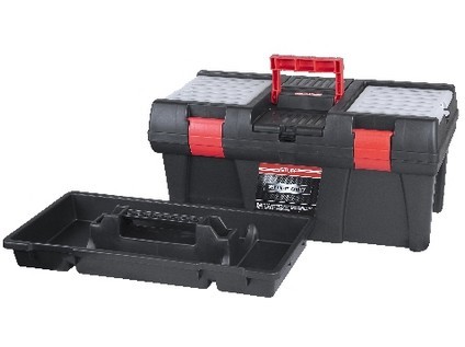 Kufr na nářadí STUFF PROFI je vyrobený z kvalitního plastu, ve vrchní části jsou dva organizéry pro drobné součástky uzavřené víkem, připraven i otvor pro visací zámek."