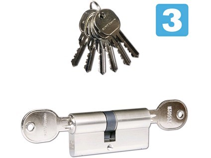 Súčasťou balenia je šesť predĺžených kľúčov, dve skrutky rôznych dĺžok (50 a 60 mm) a praktická identifikačná karta. Vložka je voľne kopírovateľná, čo uľahčuje potrebu prípadného získania náhradných kľúčov.