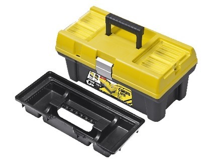 Kufr na nářadí STUFF SEMI PROFI CARBO je vyrobený z kvalitního plastu, ve vrchní části jsou dva organizéry pro drobné součástky uzavřené víkem."