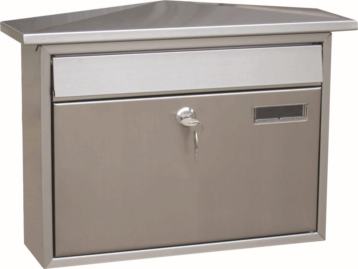 Poštovní nerezová schránka se stříškou, uzamykatelná. Rozměry - výška 28,8cm, šířka 41cm, hloubka 10cm. prečítať celé