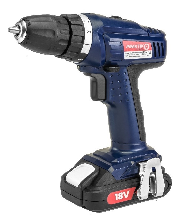 Výkonná aku vrtačka s možností použití jako šroubovák. Kvalitní Li-on akumulátor o napětí 18V a kapacitě 1300 mAh. Šroubovák – vrtačka je dodáván v praktickém boxu pro přenášení a uložení. Součástí dodávky jsou rychlonabíječka, praktický háček na zavěšení na oděv, sada 6 bitů a 6 vrtáků.