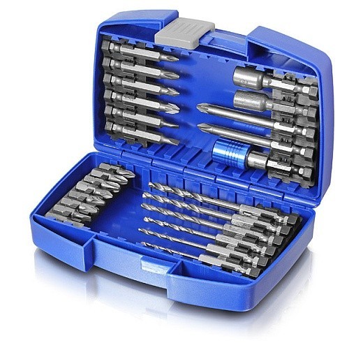 materiál: ocel: S2sada obsahuje:8x bity 25mm: PH1‚ PH2‚ PH3 / PZ1‚ PZ2‚ PZ3 / SL3‚ SL4 6x bity 50mm: PH1‚ PH2 / PZ1‚ PZ2 / SL3‚ SL4 2x bity 75mm: PH2‚ PZ2 2x nut setter: 6x48 mm‚ 8x48 mm 6x HSS vrták: 2‚ 2.5‚ 3‚ 3.5‚ 4 ‚ 4.5 mm 1 x magnetický držák bitů prečítať celé