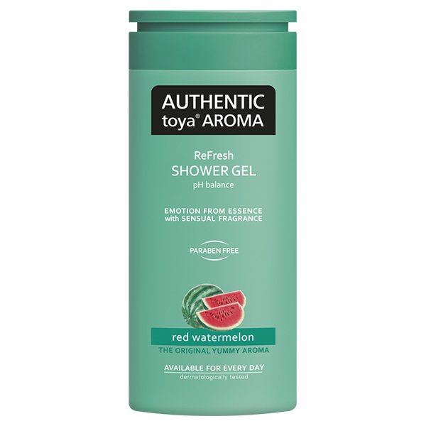 Authentic Toya Aroma - luxusní parfémovaný sprchový gel s vůní červeného vodního melounu - 400MLOsvěžující luxusní sprchový gel pro dokonalou aromatickou sprchu nebo koupel. Sprchový gel má autentickou vůni a obsahuje velmi jemné složení bez parabenů. Sprchový gel Toya je vhodný pro každodenní použití. Díky bohaté pěně a luxusní autentické vůni se stává sprchování s tímto gelem opravdovým zážitkem.Balení 400ML