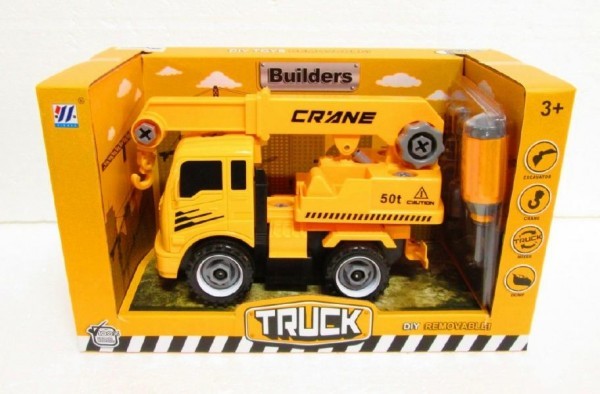 Auto jeřáb stavební šroubovací plast 23cm v krabici 32x19x16cm