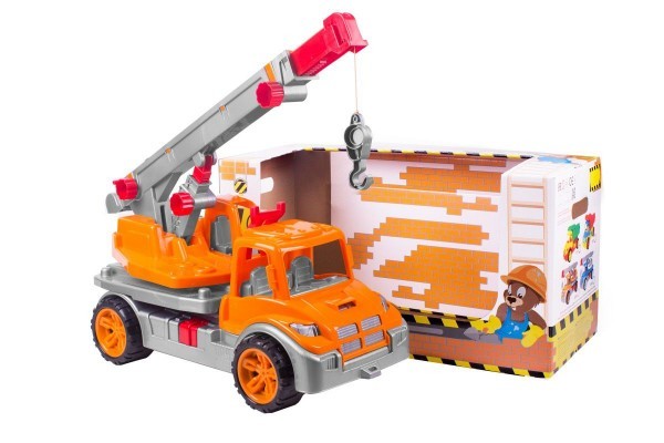 Plně mechanicky funkční autojeřáb o velikosti 56 cm. Samotné rameno jeřábu lze otáčet o 270°.