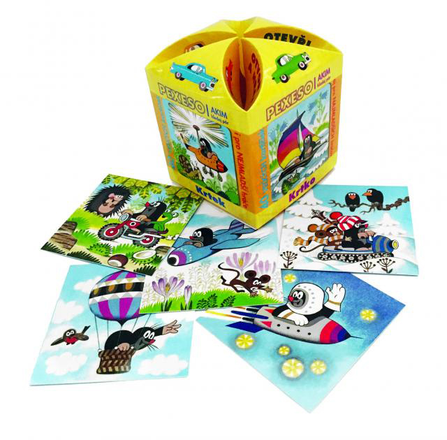 Pexeso v krabičce Krtek je populární dětská stolní hra, která nikdy neomrzí a zapojit se můžou i dospělí. Obsahuje celkem 40 kartiček k hraní a kartičky s návody pro oba principy hry. Krabička s ozdobným zavíráním, tvar hvězdičky. prečítať celé