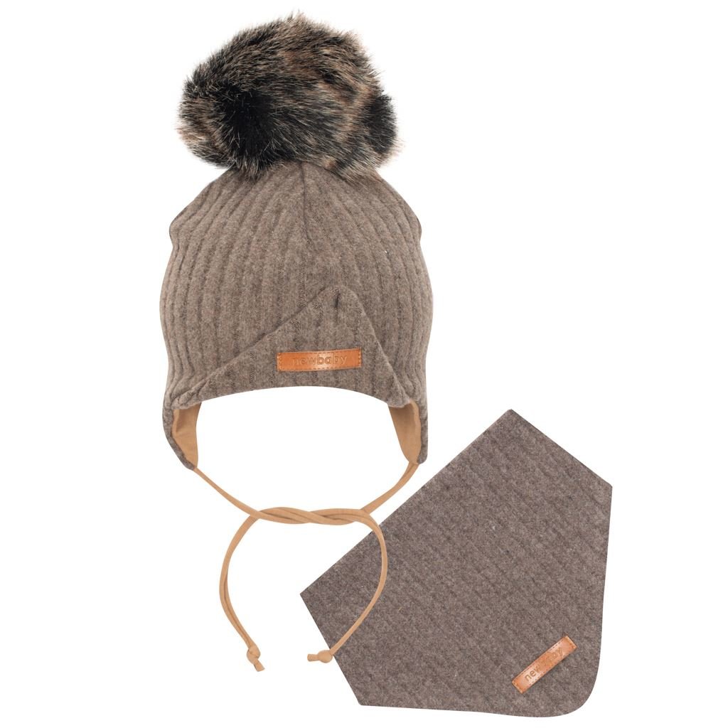 Podzimní kojenecká čepička s šátkem na krk New Baby Special One hnědá - velikost 56 (0-3m)
