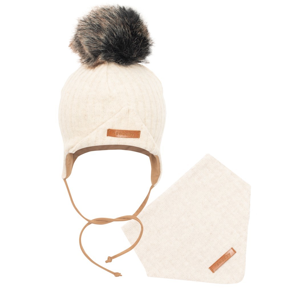 Podzimní kojenecká čepička s šátkem na krk New Baby Special One béžová - velikost 74 (6-9m)