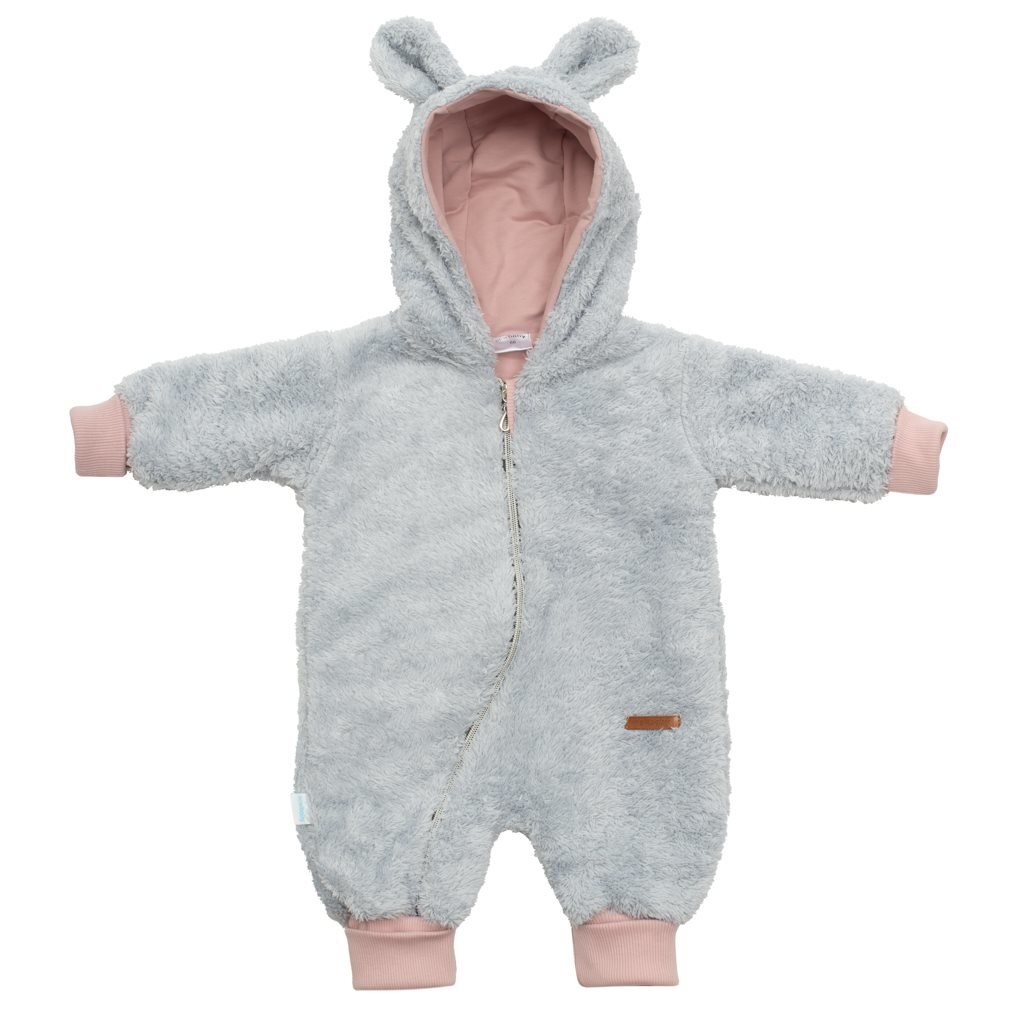 Luxusní dětský zimní overal New Baby Teddy bear šedo růžový - velikost 80 (9-12m)