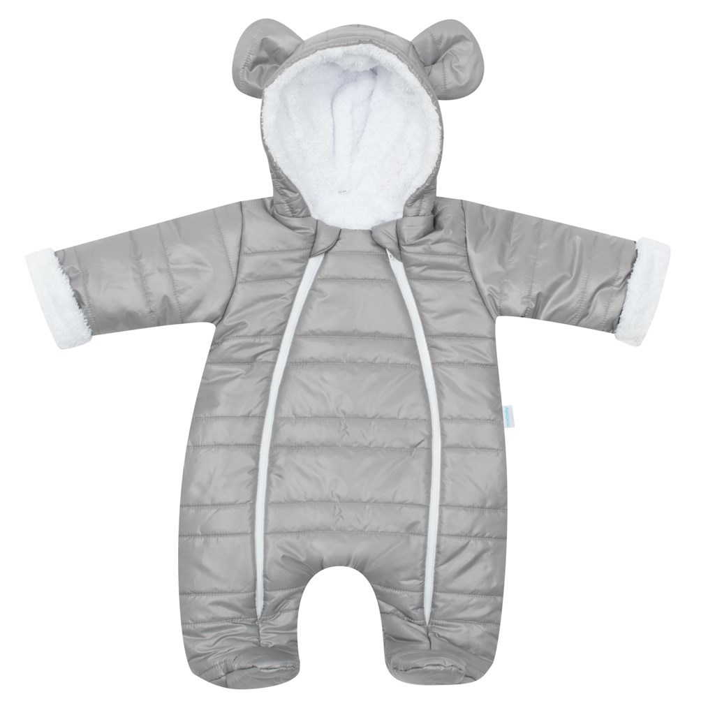 Zimní kojenecká kombinéza s kapucí a oušky New Baby Pumi grey - velikost 74 (6-9m)