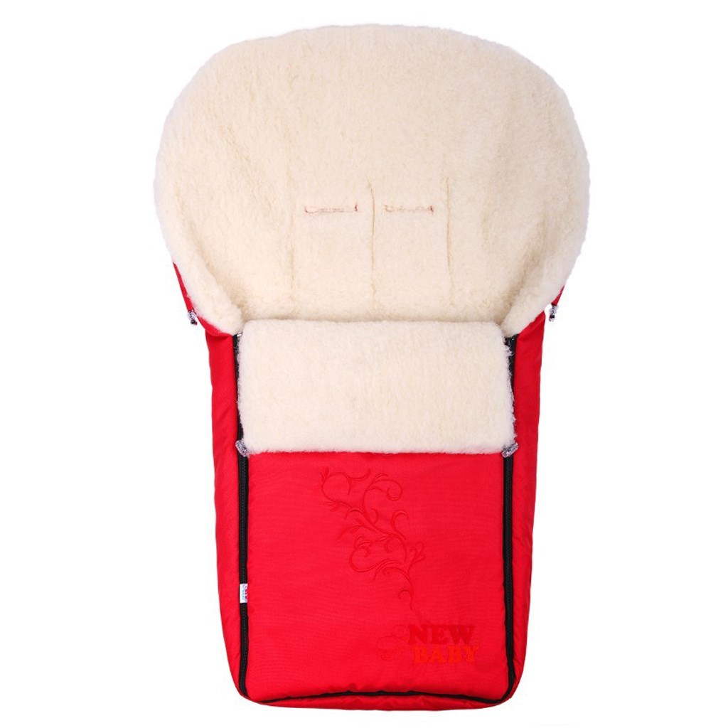 Dětský zimní fusák New Baby s ovčím rounem. Má na zadní straně praktickou kapsičku, díky které fusak lépe drží na kočárku.