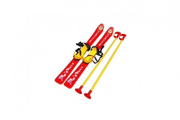 Sada obsahuje plastové lyže a hůlky bez kovových hrotů. Lyže se zapínají na běžnou dětskou zimní obuv. Vázání je univerzální a umožňuje použít boty různé velikosti.