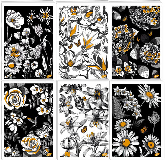 Kolekce poznámkových sešitů s kresbami na obálce. Motivy květin s efektem zlatých třpytek na matné obálce. Kvalitní sešity v šité vazbě s pevnou lesklou obálkou. Formát A4, 40 listů (papír 80 g), linkovaný Celkem 6 motivů. prečítať celé