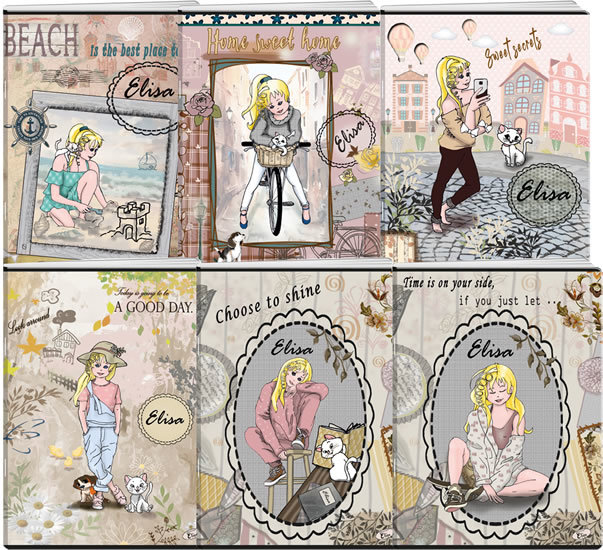 Kolekce poznámkových sešitů s kresbami dívky Elisy. Kvalitní sešity v šité vazbě s pevnou lesklou obálkou. Formát A5, 40 listů (papír 80 g), linkovaný Celkem 6 motivů. prečítať celé