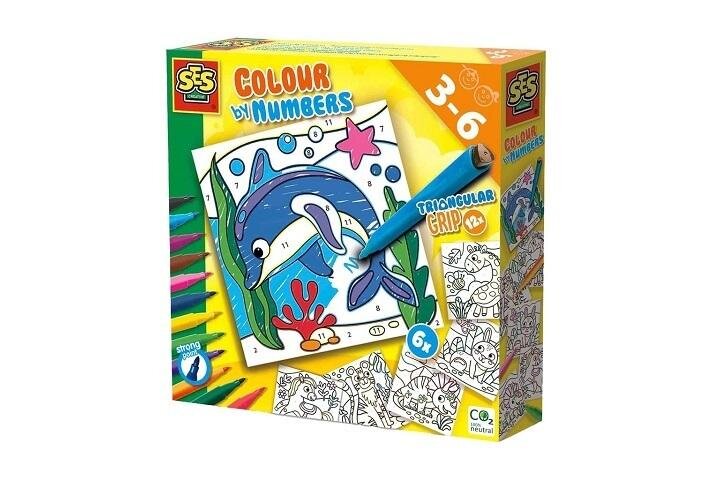 Koloruj według numerów! Trójkątny kształt markerów zachęca dzieci do ich prawidłowego chwytania. Markery są dostępne w 12 jasnych kolorach i mają solidne końcówki. Dzięki tym kolorowankom dzieci mogą kolorować wesołe ilustracje numer po numerze. Najmłodszym dzieciom dodatkową pomoc zapewniają kolorowe linie wokół pudełek. W ten sposób kolorowanie jest zawsze przyjemnością, a 6 kolorowanek można całkowicie pokolorować bez żadnego wysiłku.