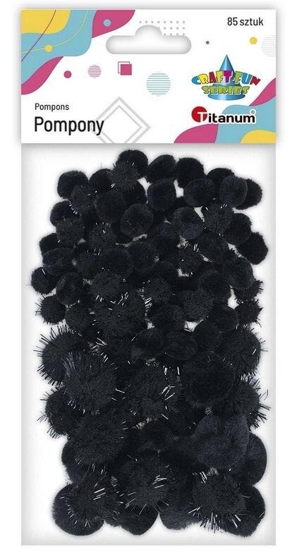 Pompony akrylowe i brokatowe 85szt. mix rozmiarów czarne prečítať celé