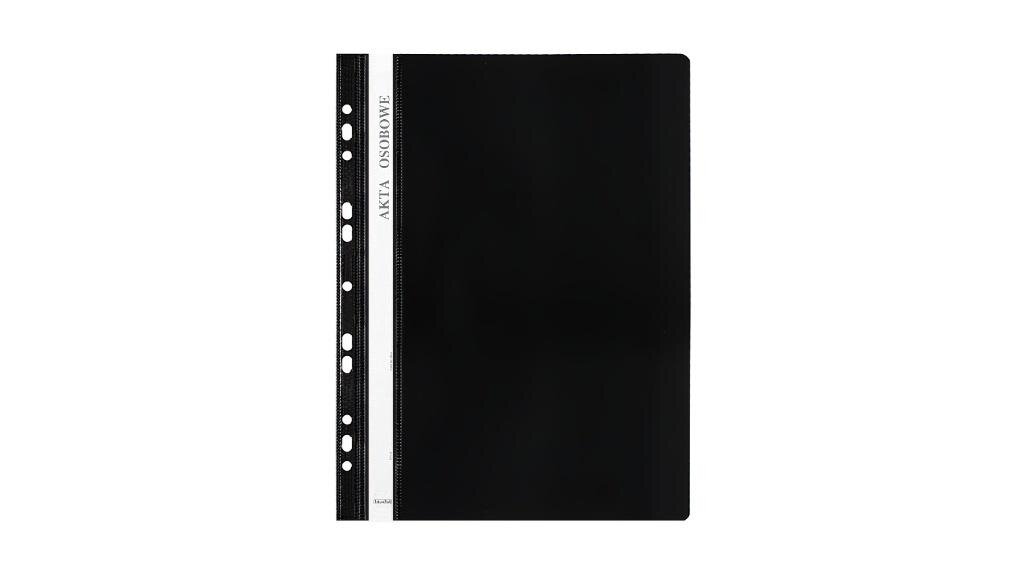 Skoroszyt wykonany z twardej, nieprzezroczystej folii PVC, dla ochrony danych osobowych. Wewnątrz zamontowano mechanizmy skoroszytowe umożliwiające wpięcie dokumentów. Wyposażony w uniwersalne, papierowe przekładki A, B, C, D, E bez opisu kategorii. Wzmocniona boczna perforacja umożliwiająca...