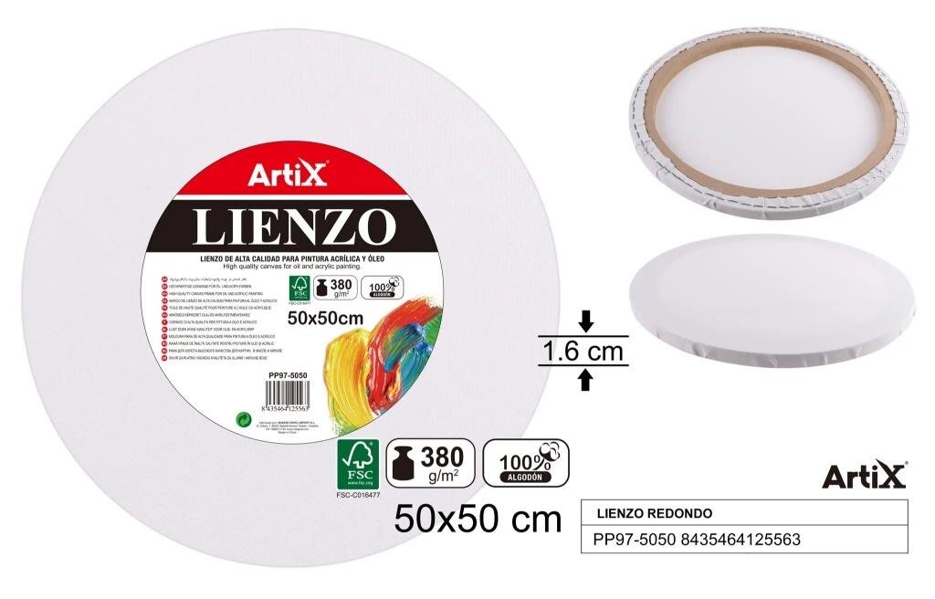 Podobrazie okrągłe 50x50x1.6cm 380G/m2