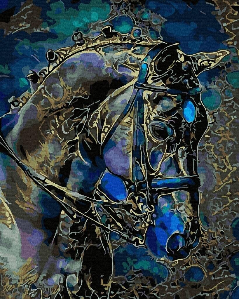 Elegancka i pełna detali głowa konia w złoto-niebieskiej stylistyce. Obraz idealny dla miłośników koni i majestatycznych stworzeń.Poziom trudności: średni.Wymiary: 40x50 cm.Zawiera: płótno na ramie, ponumerowane farby akrylowe, zestaw pędzli. prečítať celé