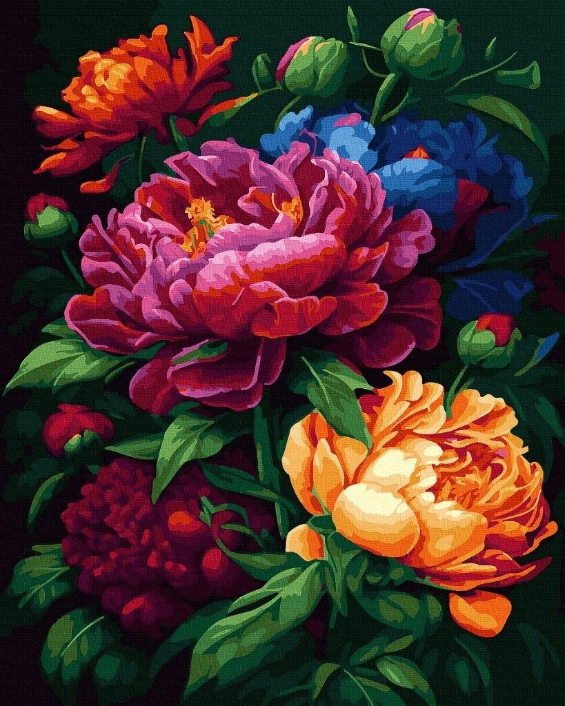 Pełne życia i kolorów piwonie w bogatym, realistycznym wydaniu. Doskonały wybór dla fanów klasycznych kwiatowych kompozycji.Poziom trudności: średni.Wymiary: 40x50 cm.Zawiera: płótno na ramie, ponumerowane farby akrylowe, zestaw pędzli. prečítať celé