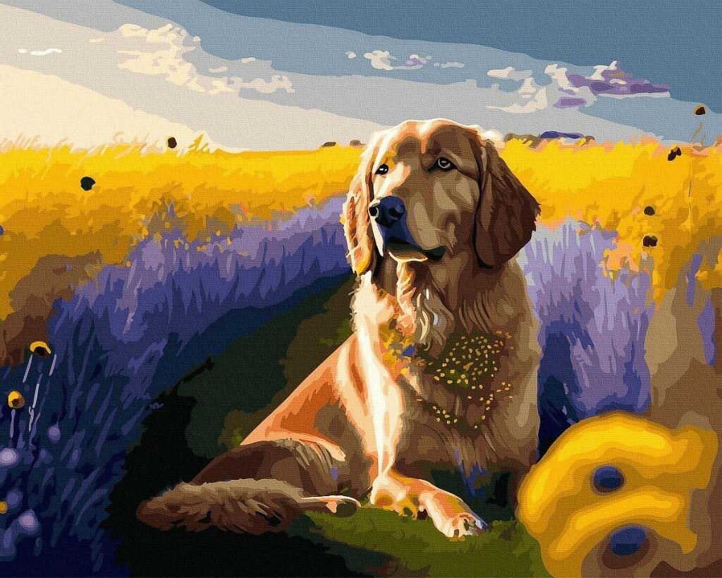 Uroczy pies leżący na tle żółto-fioletowego pola. Obraz pełen ciepła, przyjaźni i natury idealny dla miłośników zwierząt.Poziom trudności: średniWymiary: 40x50 cmZawiera: płótno na ramie, ponumerowane farby akrylowe, zestaw pędzli prečítať celé
