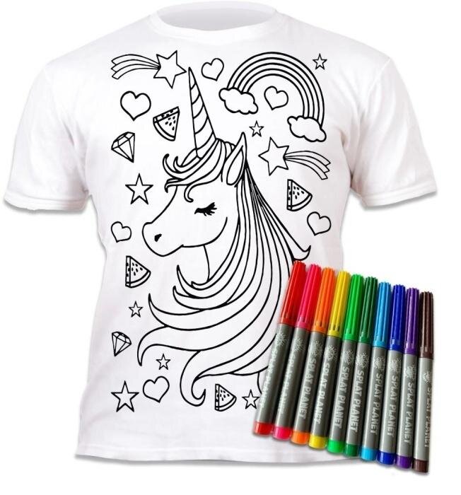 Każde opakowanie zawiera koszulkę i zestaw 10 magicznych pisaków do kolorowania. Pisaki są nietoksyczne i zmywalne. Po zakolorowaniu koszulki można ją wyprać i pokolorować od nowa. Występuje w rozmiarze dla 5 - 6 lat. Materiał: 100% bawełna. Kolory mazaków: Różowy, niebieski, granatowy, pomarańczowy, czerwony, zielony, ciemnozielony, fioletowy, brązowy i żółty.