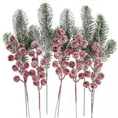 Szronione gałązki dekoracyjne z owocami 26cm 10szt