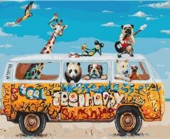 Malowanie po numerach 40x50cm Zwierzątka w busie