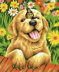 Malowanie po numerach 40x50cm Piesek z motylem