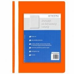 Skoroszyt twardy na dokumenty z kolekcji STARPAK dedykowanej dla biura i szkoły. Skoroszyt formatu A4, służący do przechowywania i prezentacji dokumentów. Wykonany z mocnego PCV. Przednia okładka przezroczysta, twarda, co umożliwia lepszą ochronę dokumentów, tylna w kolorze pomarańczowym, wysuwany plastikowy pasek do opisu, zaokrąglone rogi. Produkt pakowany w przezroczystej folii po 10 sztuk.