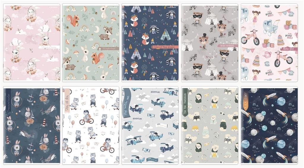 Miękkie, laminowane, kartonowe okładkiMix 10 różnych wzorów okładekFormat A5, 16 kartekPapier o gramaturze 60 g/m2 prečítať celé
